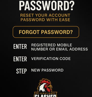 Forgot your password? No problem. Recover your account today and get back to the sabong action—only at INTERNATIONAL SLASHER.